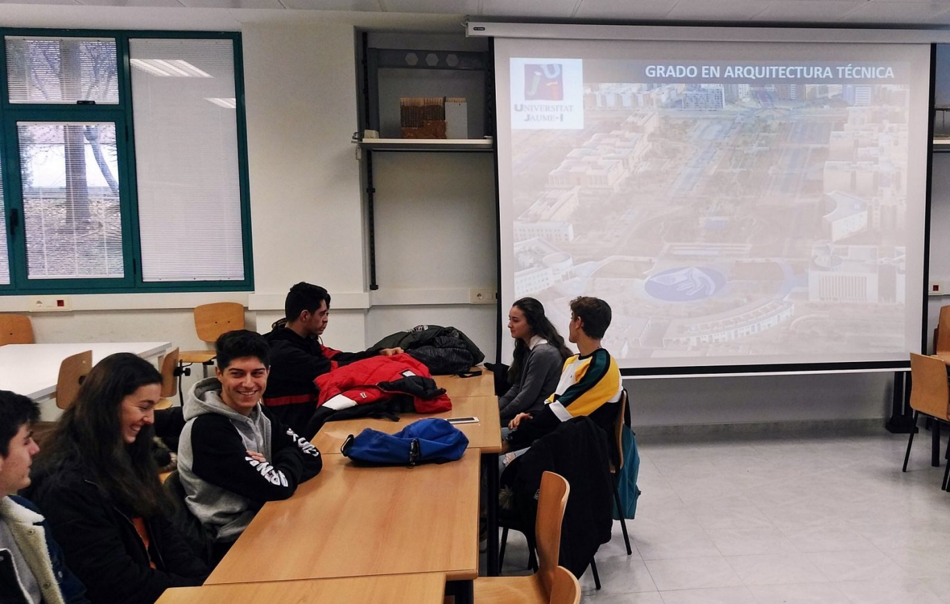 Un grupo de alumnos de 1º de Bachillerato han asistido a dos sesiones prácticas del Grado de Arquitectura Técnica, en la Universitat Jaume I de Castellón (UJI). En concreto, han participado en un taller sobre construcción de rascacielos y en otro sobre diseño de formas en 3D por ordenador. Esta actividad forma parte de las sesiones sobre orientación universitaria.