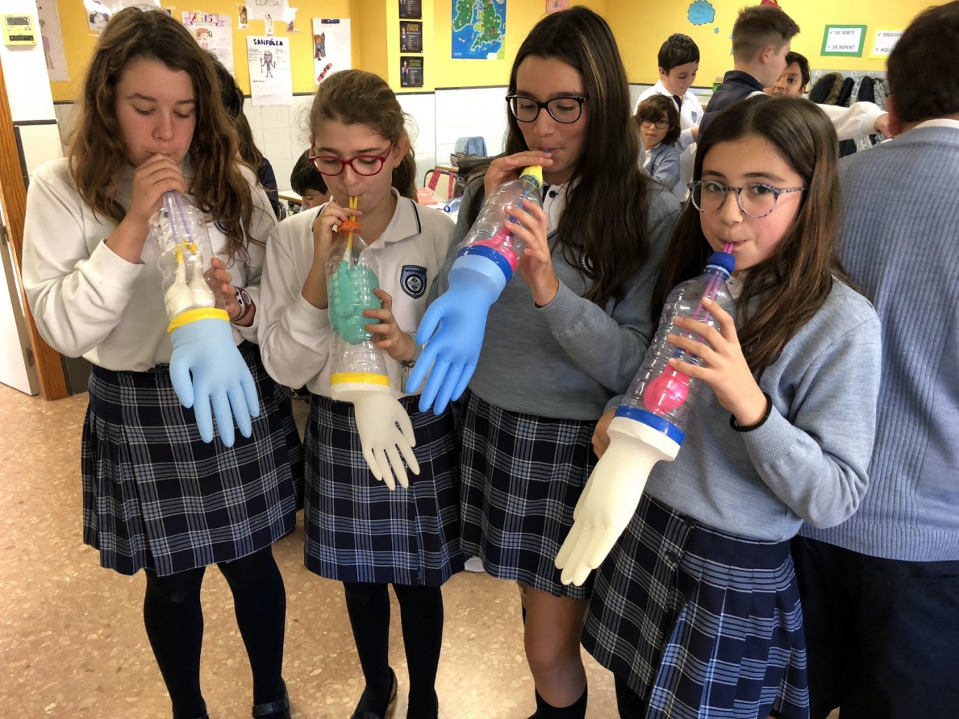 Los alumnos de 6º de Primaria han fabricado un imaginativo modelo de aparato respiratorio con materiales sencillos para comprender mejor su funcionamiento dentro de la unidad didáctica sobre la función de nutrición que están abordando en Ciencias Naturales.