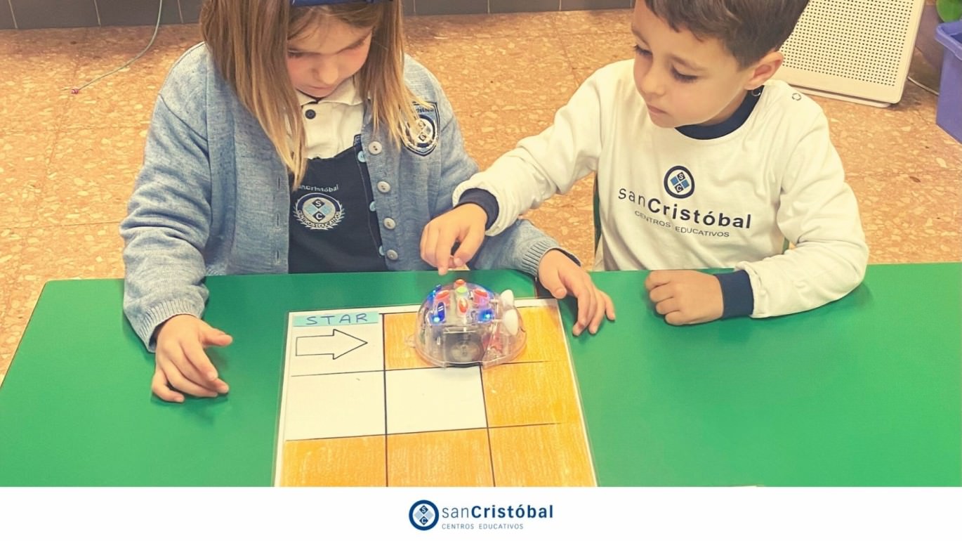 Los alumnos y alumnas de Infantil, en el marco de la asignatura "music time", reconocen los instrumentos de cuerda ("strings instrumets") mediante la programación del robot Blueboot. Con él desarrollan el pensamiento computacional, la percepción del espacio, aprenden a trabajar en equipo, a organizarse y a llegar a acuerdos respetando las aportaciones de sus compañeros y el vocabulario en ingles de los intrumentos de cuerda.