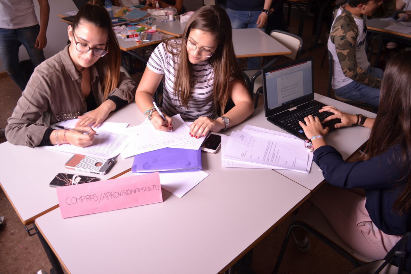 Los alumnos del Ciclo Medio de Gestión Administrativa están desarrollando una actividad práctica en la que asumen los roles existentes en Blue Light S.L., una empresa ficticia que han de aprender a gestionar. Repartidos por equipos, cada día se les asigna un departamento (Purchasing and supply, Human resources, Customer support, Merchandising o External department) de dicha mercantil donde trabajando cooperativamente conocen en primera persona las tareas que habrían de afrontar en su día a día en el mercado laboral. Además, descubren en primera persona las estrategias más eficaces para superar entrevistas de selección de personal.