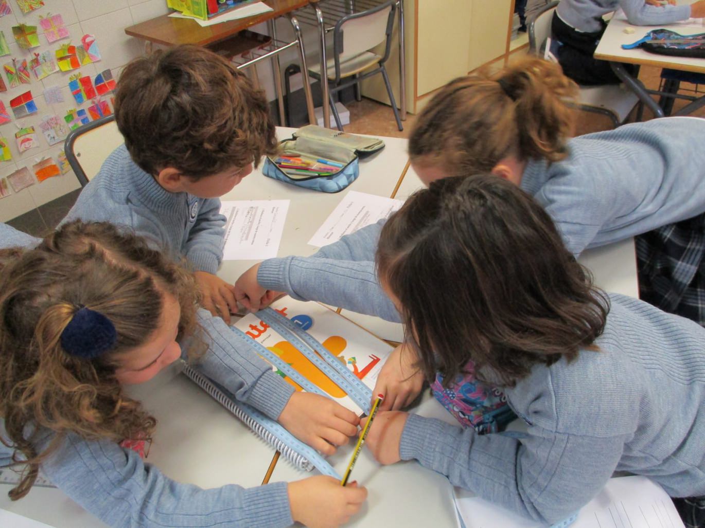 Los estudiantes han llevado a cabo actividades en el patio y en el aula ayudándose de metros, figuras geométricas gigantes, tizas, robots, etc. La actividad ha servido para abordar los conocimientos basándonos en la neurodidáctica y el aprendizaje cooperativo, teniendo muy presente el ritmo de aprendizaje de cada niño.