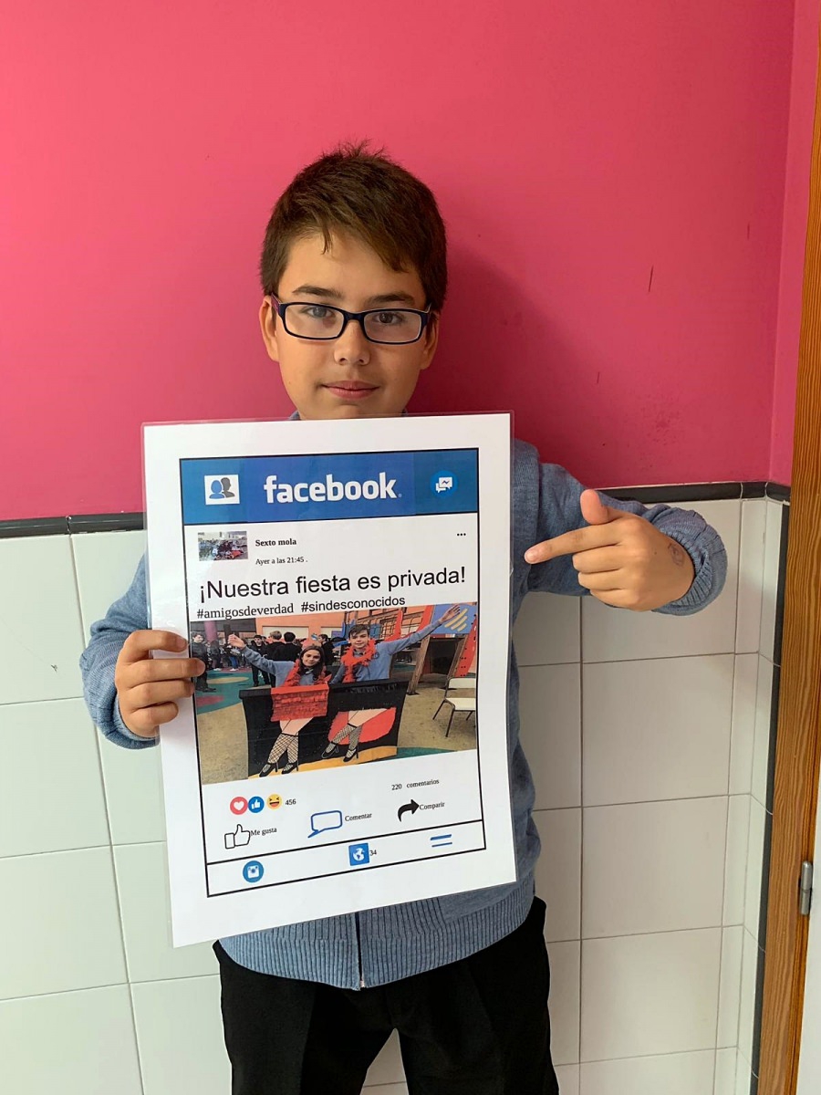 Los alumnos de 6º de Primaria han trabajado en clase la importancia de proteger sus datos personales en internet y han conocido los peligros que pueden encontrar en las redes sociales. También han aprendido algunos conceptos relacionados con el uso nocivo de internet como 'ciberbullying' (acoso psicológico a través de las redes sociales o los teléfonos móviles), 'sexting' (envío de mensajes sexuales) o 'grooming' (conducta de un pederasta que falsea su identidad para ganarse la confianza de un menor a través de las redes sociales).