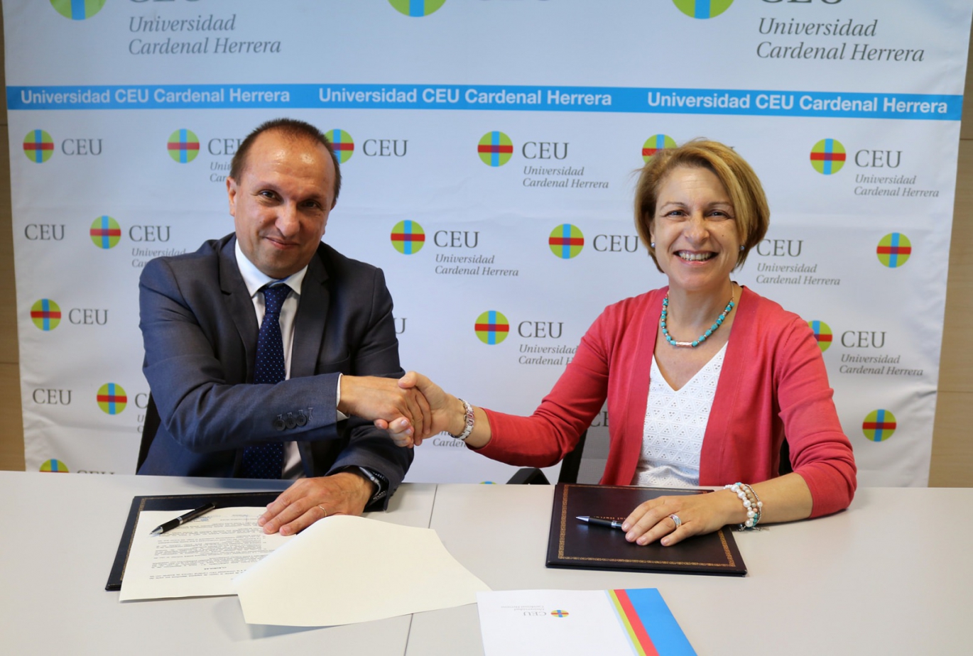 Colegio San Cristóbal y la Universidad CEU Cardenal Herrera han formalizado un convenio marco de colaboración cultural, educativa y científica, así como de asistencia mutua entre ambas instituciones, las cuales comparten valores y una decidida apuesta por la excelencia educativa. Con este acuerdo de cooperación se consolidan acciones conjuntas ya emprendidas como, por ejemplo, la realización de prácticas por parte del alumnado del CEU en San Cristóbal y el apoyo del centro universitario a Educainnova, la jornada sobre innovación educativa que anualmente celebra el colegio. Del mismo modo, se abre un amplio abanico de posibilidades de colaboración en futuros proyectos.