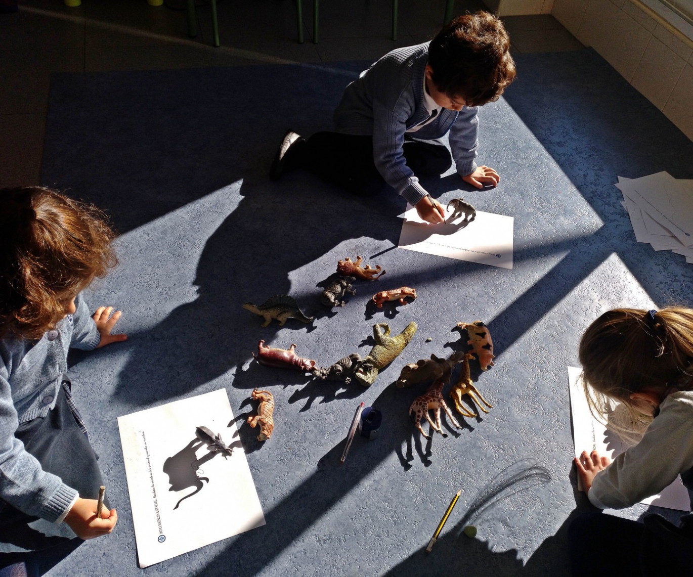 Los alumnos de Infantil 4 años han dibujado la sombra de diferentes animales para conocerlos mejor y prestar atención a sus características. La actividad estimula la inteligencia espacial.