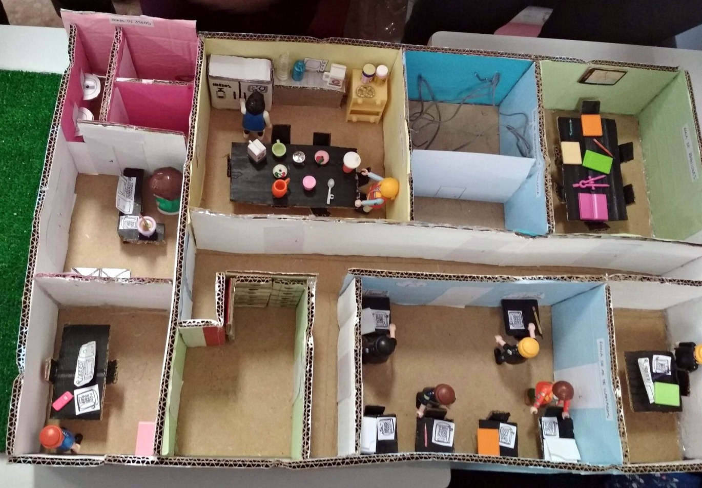 Los alumnos del Ciclo Formativo de Grado Medio de Atención a personas en situación de dependencia han realizado unas maquetas del que sería su centro de atención, en el marco de la asignatura de Teleasistencia. Para ello han empleado materiales como el cartón, la madera, cartulina, papel de aluminio, así como figuras de Playmobil y piezas de Lego.