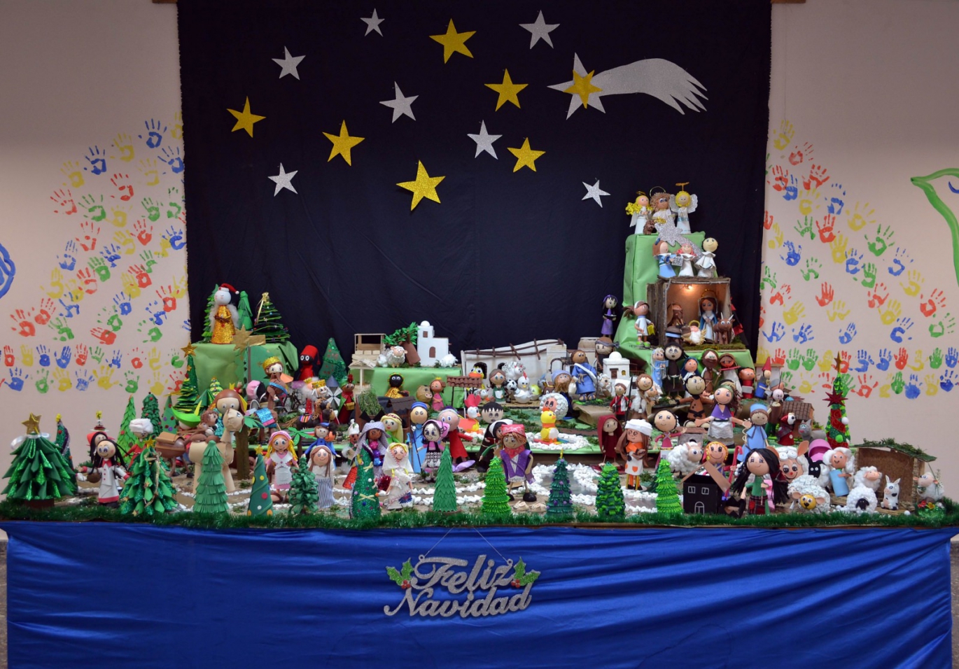 Las instalaciones del Colegio San Cristóbal han sido engalanadas por los alumnos y los profesores con motivos navideños. Los alumnos de 1º, 2º y 3º de Secundaria han montado el tradicional Belén. Cada curso ha elaborado un tipo de figuras (animales, personajes y casas) con una estética muy personal y mediante la técnica de las fofuchas. Para ello han empleado materiales como la goma EVA, telas, fieltros o cartulinas.