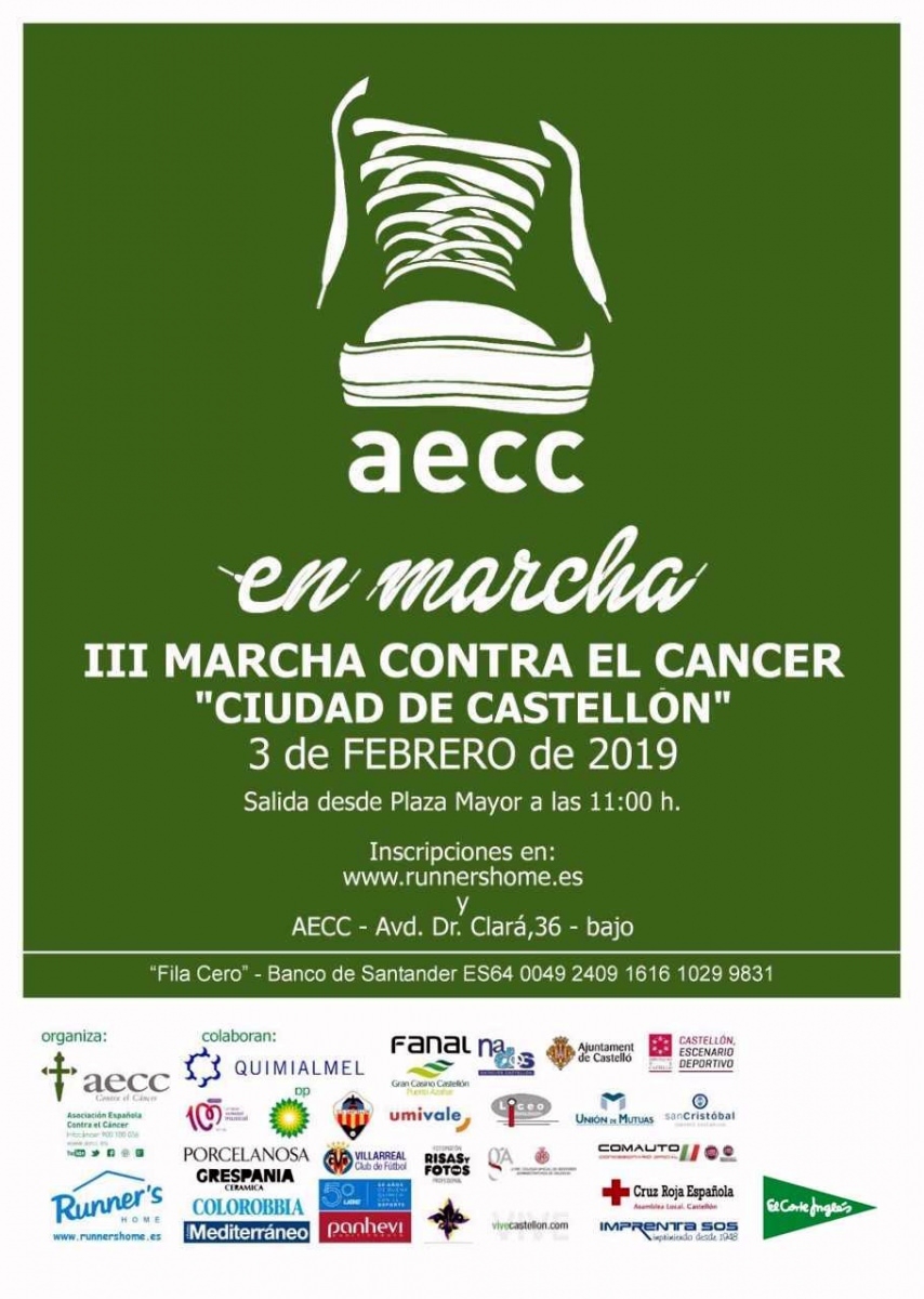 El Colegio San Cristóbal será patrocinador oficial de la 'III Marcha Contra el Cáncer Ciudad de Castellón'. El evento no competitivo tendrá lugar el domingo 3 de febrero a partir de las 11.00 horas. La salida y meta se efectuarán desde la plaza Mayor de Castellón. Durante 3 kilómetros se recorrerán las principales calles del centro de la ciudad.