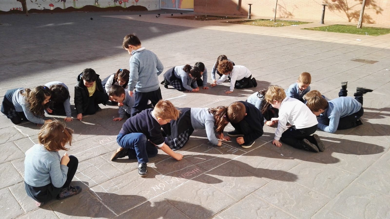 Los alumnos de Infantil 5 años aprenden las diferentes partes de la casa dibujando planos con tizas en el patio. Se trata de una motivante actividad que contribuye al estímulo de su inteligencia visual-espacial.