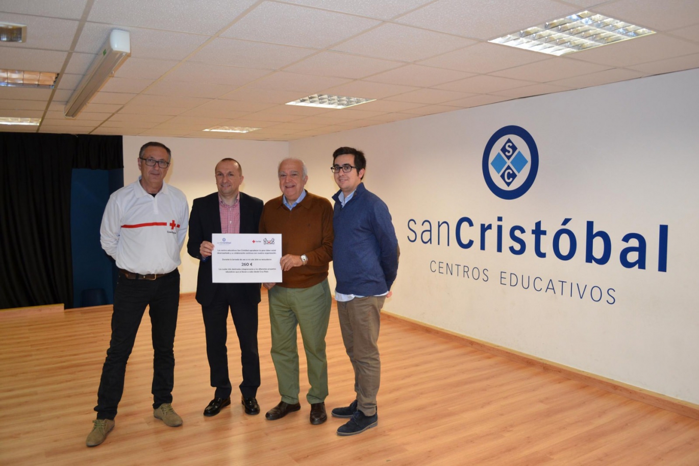 Colegio San Cristóbal ha donado a Cruz Roja Castellón la recaudación del servicio de bar de la jornada Ven a mi cole 2016, la cual asciende a 260 euros. El director general Cristóbal Bellés hizo entrega al vicepresidente de Cruz Roja Castellón José Luis Tallón de dicha cantidad que será destinada a la gran labor solidaria que desarrolla esta institución en nuestra provincia. En el acto también participaron el responsable de juventud Pablo Salvador y el jefe de servicios de socorros y emergencias Paco Pons.