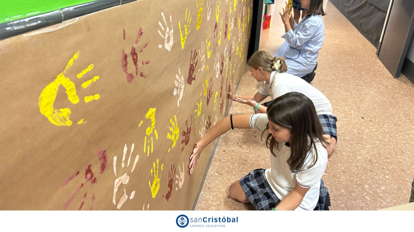 Siguiendo esta línea, también exploramos las pinturas rupestres de la Cueva de las Manos, ubicada en Argentina, como ejemplo de las primeras manifestaciones de expresión humana. Las manos plasmadas en estas cuevas simbolizan una necesidad de identidad, de pertenencia y de conexión con el grupo. Inspirados por este modelo ancestral, nuestros alumnos de sexto crearon su propio “mural de las manos”, una obra simbólica que nos recuerda cómo los seres humanos siempre hemos buscado formas de expresar nuestra existencia y dejar una huella para los que vendrán.