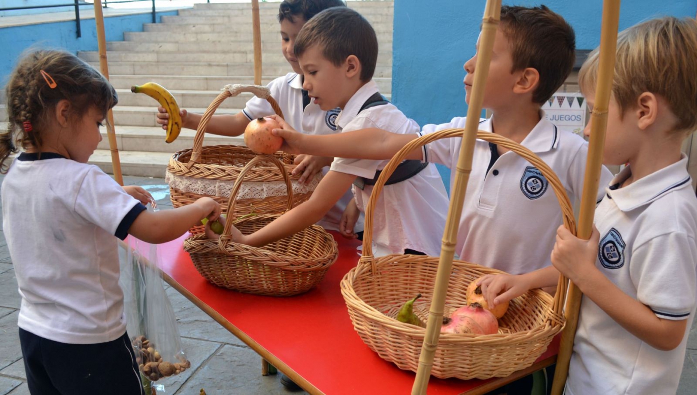 Los alumnos de Infantil celebraron en el patio la tradicional fiesta del otoño. Los niños y niñas de 3, 4 y 5 años participaron en un mercadillo donde jugaron a comprar y vender productos típicos de esta estación como castañas, nueces, cebollas, uvas o cacahuetes. Elegían los frutos y los depositaban en bolsas de plástico y de papel. Con esta actividad pretendemos que los niños entiendan la función de comprar y vender y que se relacionen entre todas las clases, que vean cuáles son los frutos del otoño, los conozcan y adquieran vocabulario.