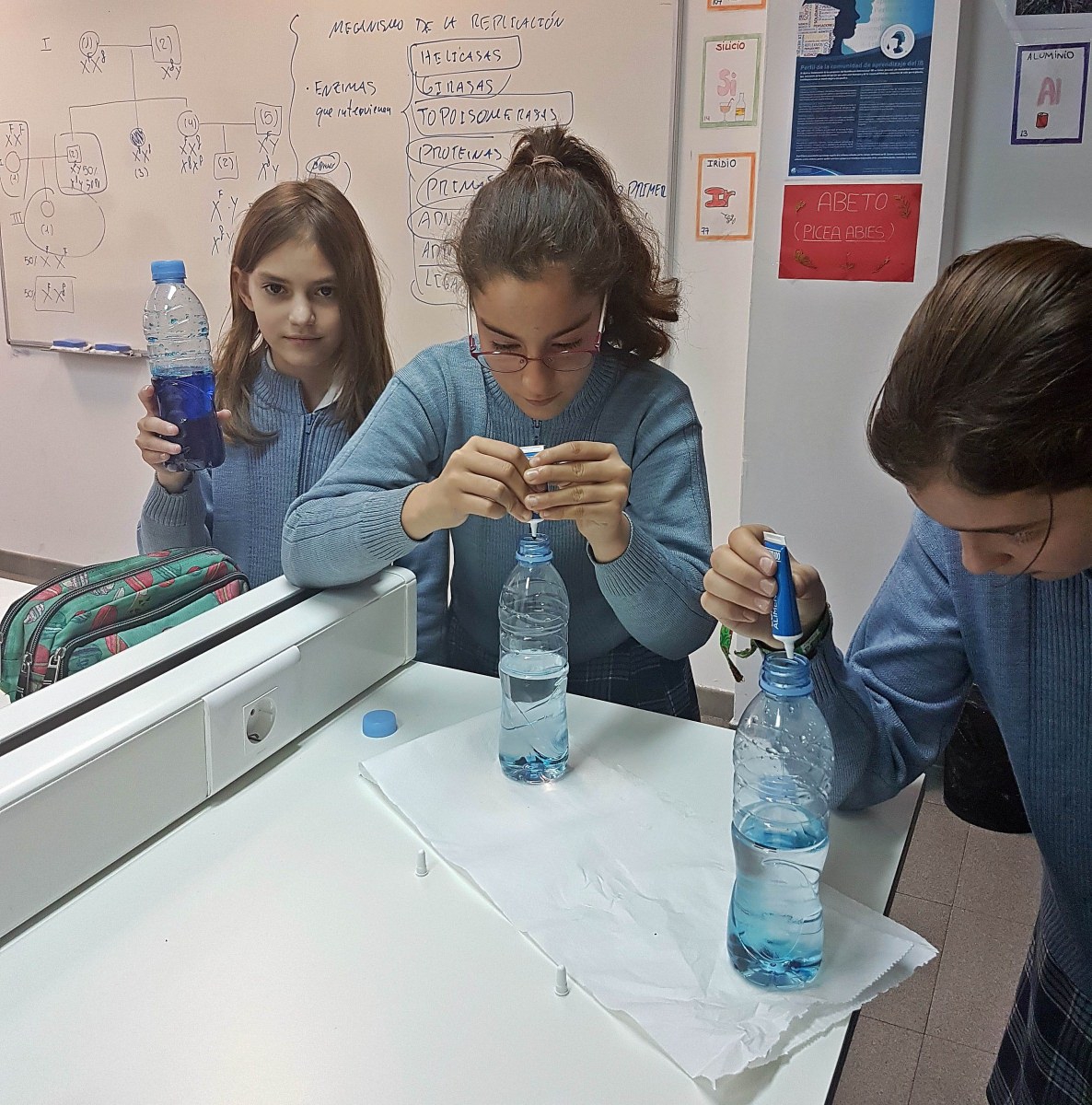 Los alumnos de 5º y 6º de Primaria han creado una lámpara de lava casera con agua, colorante y aceite.