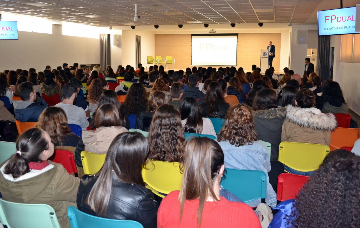 En el acto intervinieron tres alumnos de las tres familias profesionales que se imparte en el Centro que realizaron el curso pasado sus prácticas bajo la modalidad de FP Dual.