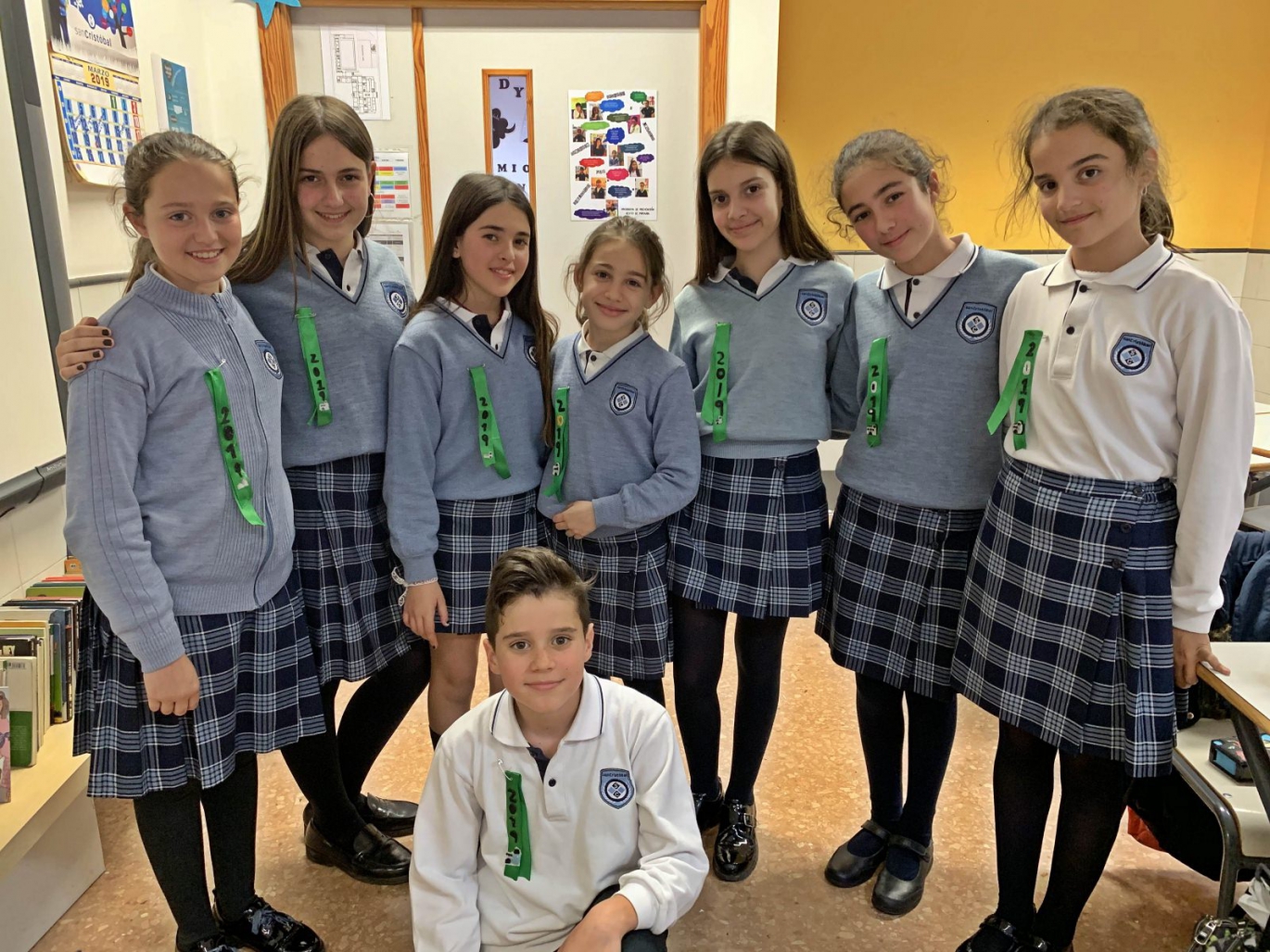 Los niños del taller de moda de 5º y 6º de Primaria lucen estos días de Magdalena la tradicional cinta verde que ellos mismos diseñaron en clase la semana pasada.