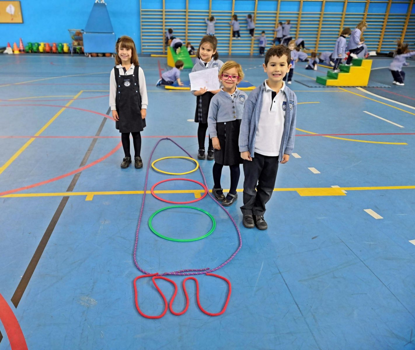 Los alumnos de Infantil 5 años están trabajando los medios de transporte, en el marco del Programa de Atención a las Inteligencias Múltiples (PAIM). En esta actividad deben realizar en primer lugar un boceto del medio de transporte que van a representar (Inteligencia Intrapersonal) y, a continuación, representarlo con cuerdas y aros (Inteligencia Corporal).