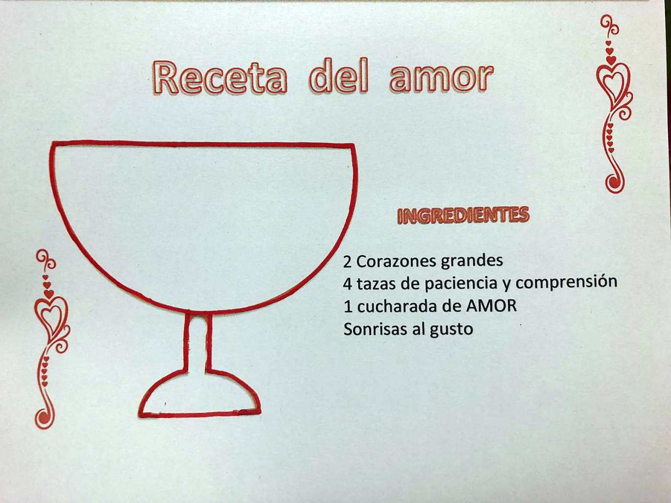 Los 'peques' de 0, 1 y 2 años de la Escuela Infantil han preparado sobre una cartulina una 'receta' de lo más amorosa para celebrar el día de San Valentín.