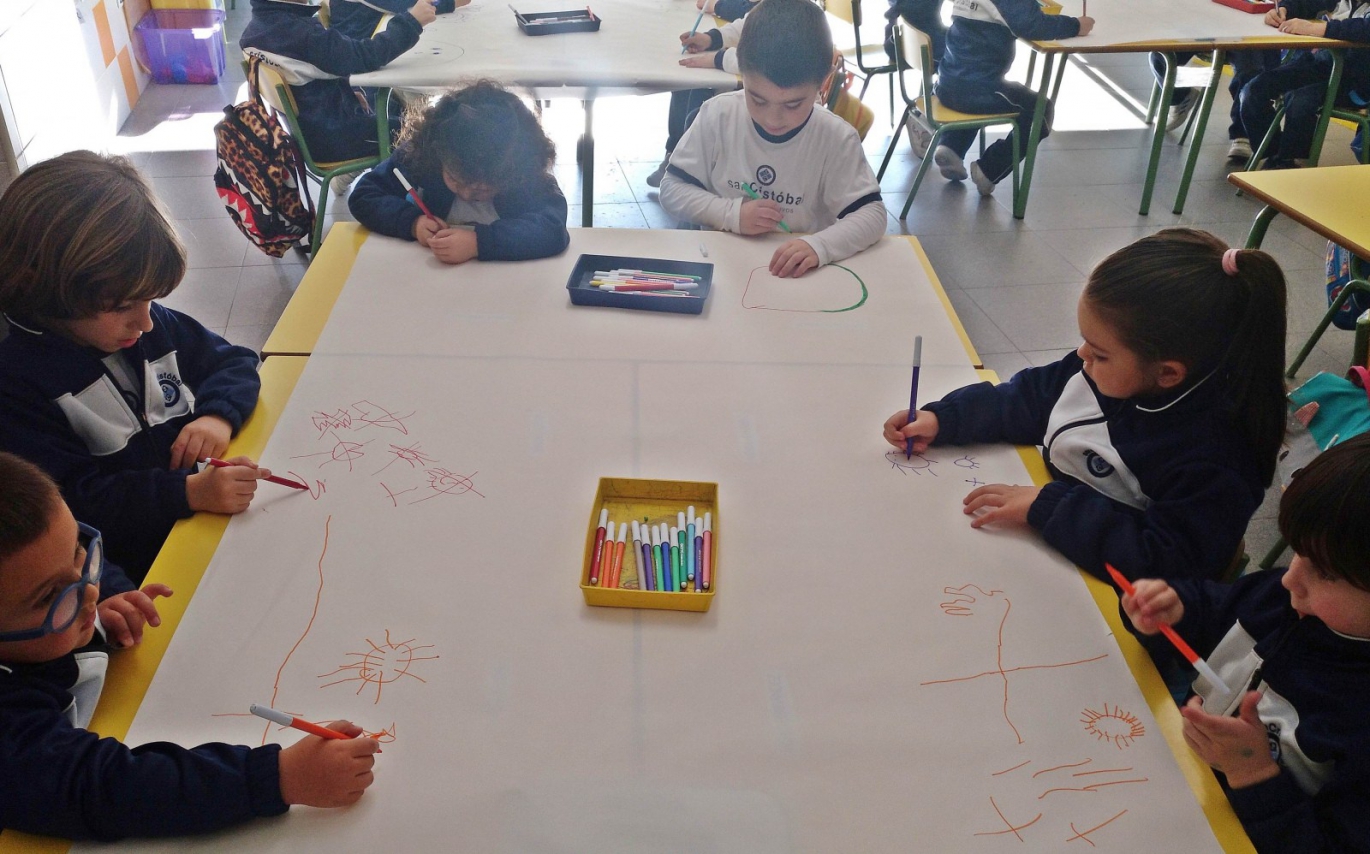 Los 'peques' de Infantil 4 años han dibujado un mural que representa los pensamientos y las emociones que les gustan. Esta actividad de educación emocional del método Braini les enseña a conocer qué valores psicológicos deben potenciar, pensar y sentir para ser felices y alcanzar el bienestar.