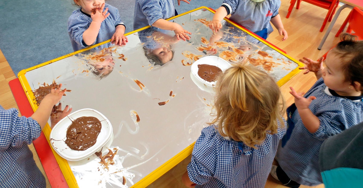 Los 'peques' de 1 año de la Escuela Infantil han pintado con chocolate, una actividad sensorial con la que han disfrutado mucho y hasta se han chupado los dedos. Saborear, manipular, oler... en definitiva, experimentar con los sentidos, es una excelente manera de aprender a edades tempranas.