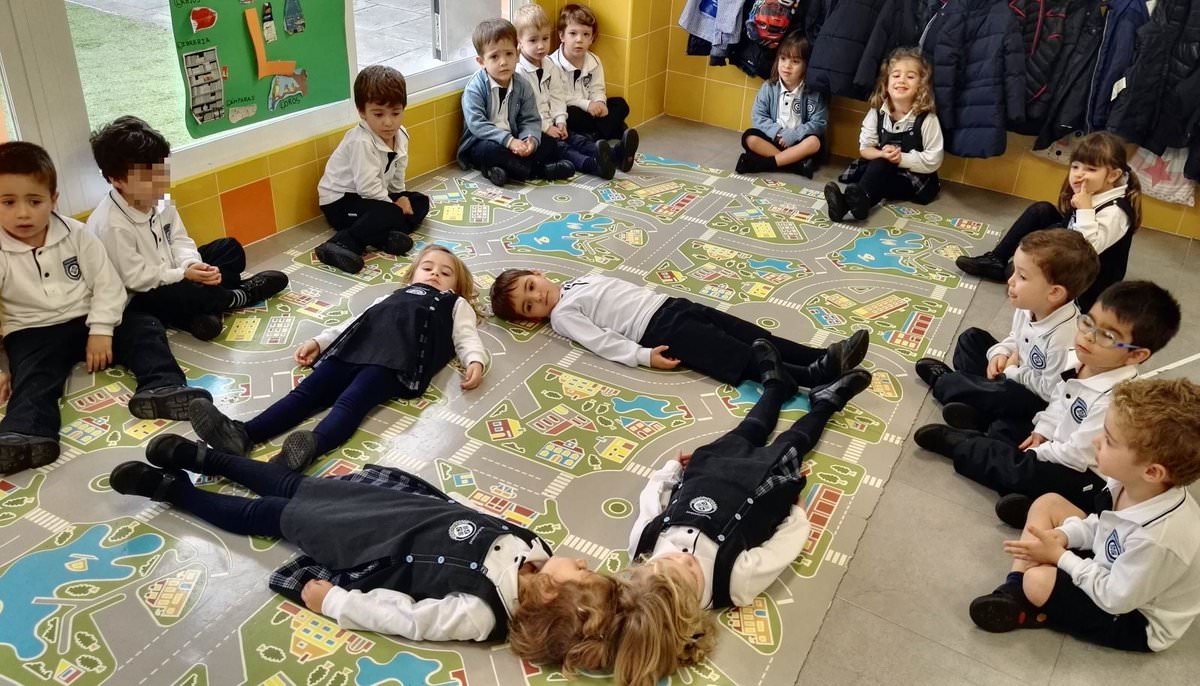 Los alumnos de Infantil 3 años desarrollan su inteligencia corporal en clase a través de la realización de figuras geométricas con su propio cuerpo.