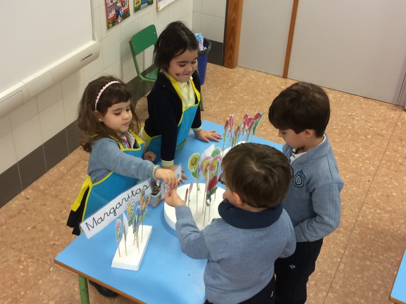 Los alumnos de Infantil 4 años aprenden jugando en el mercadillo de las flores, donde desarrollan su inteligencia interpersonal y lógico-matemática. En él compran y venden diferentes tipos flores, realizadas por ellos mismos anteriormente.