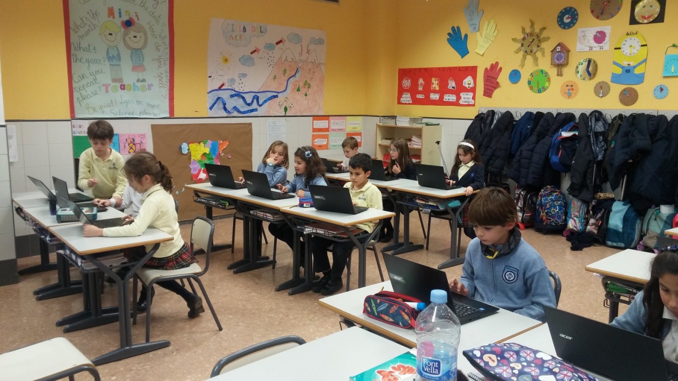 Los alumnos de 3º de Primaria aprenden con el programa Scratch durante sus sesiones de robótica. En ellas crean sus propias historias interactivas, juegos y animaciones. Scratch les ayuda a pensar de forma creativa, a razonar sistemáticamente y a trabajar de forma colaborativa.