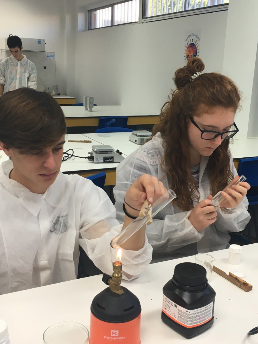 Los alumnos del Bachillerato Internacional averiguan la fórmula química de una sal hidratada en sesiones que tienen lugar en los nuevos laboratorios del centro. En ellos realizan en las mejores condiciones investigaciones experimentales para el desarrollo de sus conocimientos y habilidades científicas. Tras su renovación, la dotación de estas instalaciones se compone de equipos de destilación, equipos de disección, balanzas de precisión y agitadores magnéticos. Como medidas de seguridad se han instalado campanas extractoras de humos, además de duchas de ojos y emergencia.