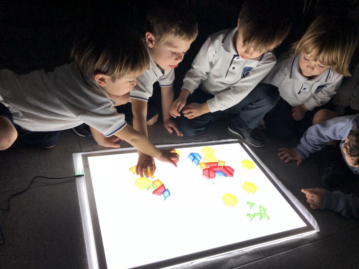 En la etapa de Infantil 3 años trabajamos con la mesa de luz para aprender las formas geométricas y los colores mediante el aprendizaje sensorial. De este modo, los niños se divierten y adquieren nuevos conocimientos a través de la experimentación y el descubrimiento.