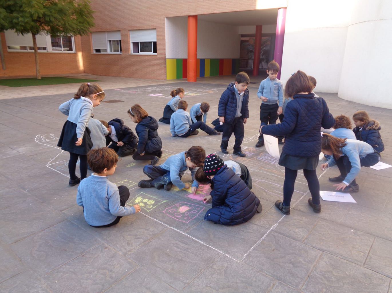 Para llevar a cabo esta actividad, lo primero fue comentar en clase cada una de las partes de la casa, así como qué hay y qué se hace en cada una de ellas. Una vez hecho esto, salimos al patio y a cada equipo le dimos el nombre de una de las estacionas de la casa (recibidor, habitación, cocina, comedor y baño). Después de leer la estancia que les había tocado, cada equipo debía dibujar con tiza dentro de una casa, anteriormente dibujada, los objetos que pertenecen a esa parte.