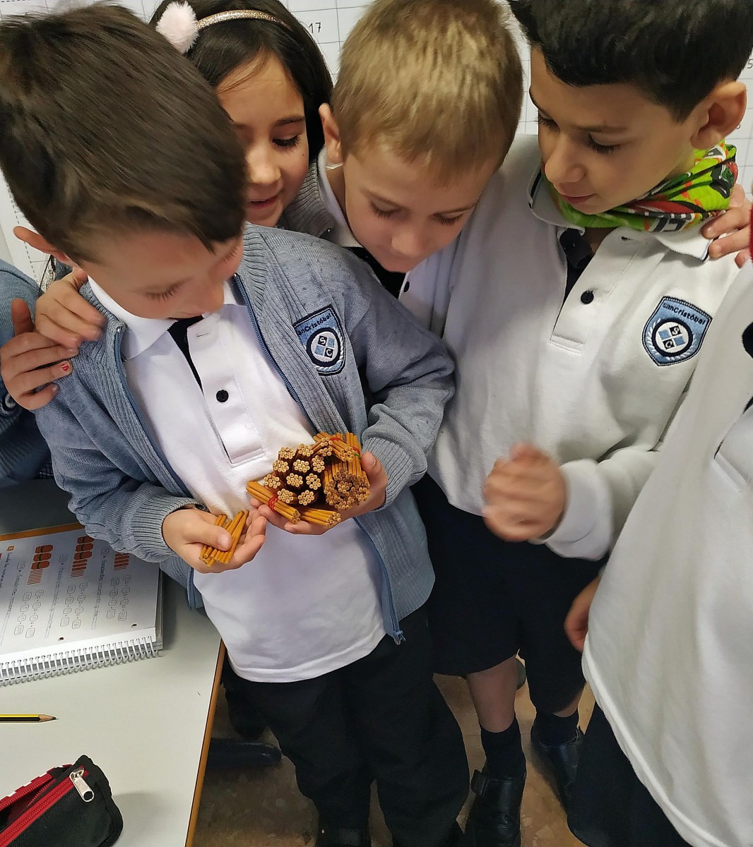 Los alumnos de 2º de Primaria han realizado una sesión manipulativa en la clase de Matemáticas para trabajar la descomposición numérica y entender así los conceptos de unidades, decenas y centenas.