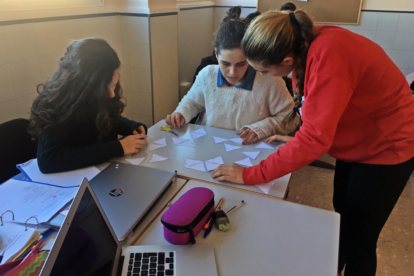 Los alumnos de la asignatura Sistemas Ambientales y Sociedades, de 1° de Bachillerato Internacional, han repasado lo aprendido en clase hasta el momento mediante un juego en el que han relacionado los conceptos trabajados con su definición para acabar construyendo un hexágono. La colaboración entre los alumnos era crucial para conseguir el objetivo.