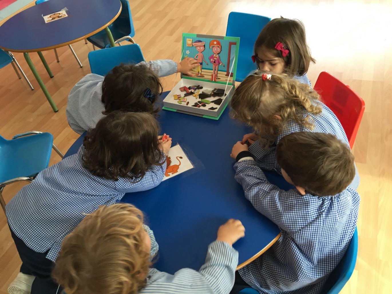 Los alumnos de la Escuela Infantil aprenden el vocabulario de las prendas de vestir mediante divertidos juegos y desfiles de moda en las sesiones de English corner. Esta estrategia de enseñanza-aprendizaje está basada en el descubrimiento, la creatividad y la estimulación temprana con el objetivo de desarrollar sus habilidades lingüísticas. El 50% de las clases de la Escuela Infantil son impartidas en inglés con sesiones diseñadas por el equipo pedagógico y el departamento de idiomas, con profesorado nativo y especializado.